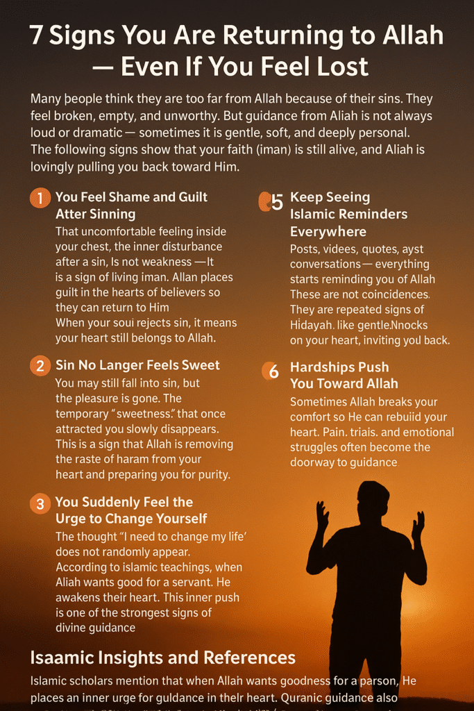 Many people think they are too far from Allah because of their sins. They feel broken, empty, and unworthy. But guidance from Allah is not always loud or dramatic — sometimes it is gentle, soft, and deeply personal. The following signs show that your faith (iman) is still alive, and Allah is lovingly pulling you back toward Him.